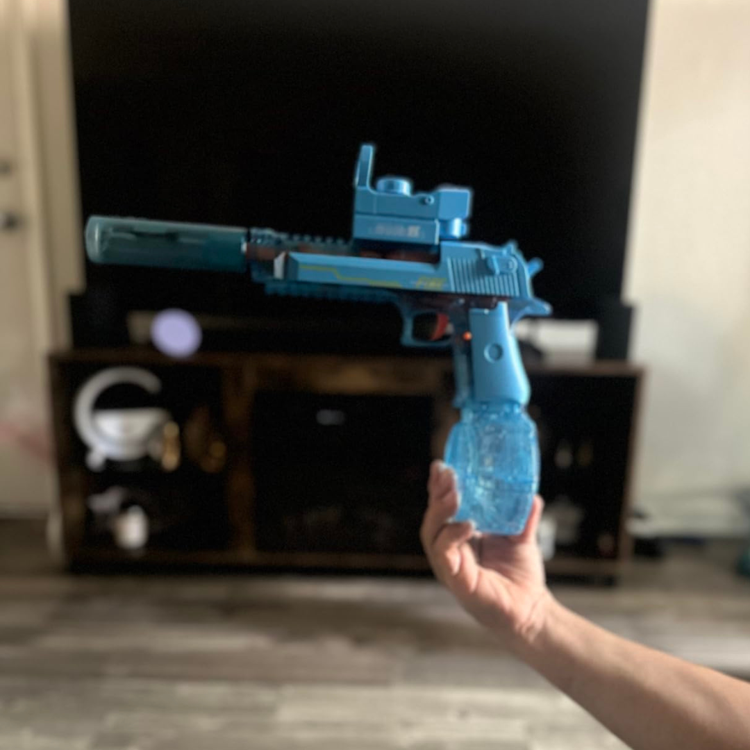 La pistola de agua eléctrica está pensada para uso al aire libre: piscinas, jardines, playas o patios. Sin embargo, al ser un dispositivo eléctrico, NO DEBE SUMERGIRSE COMPLETAMENTE EN EL AGUA solo debe usarse para disparar agua, no como juguete sumergible